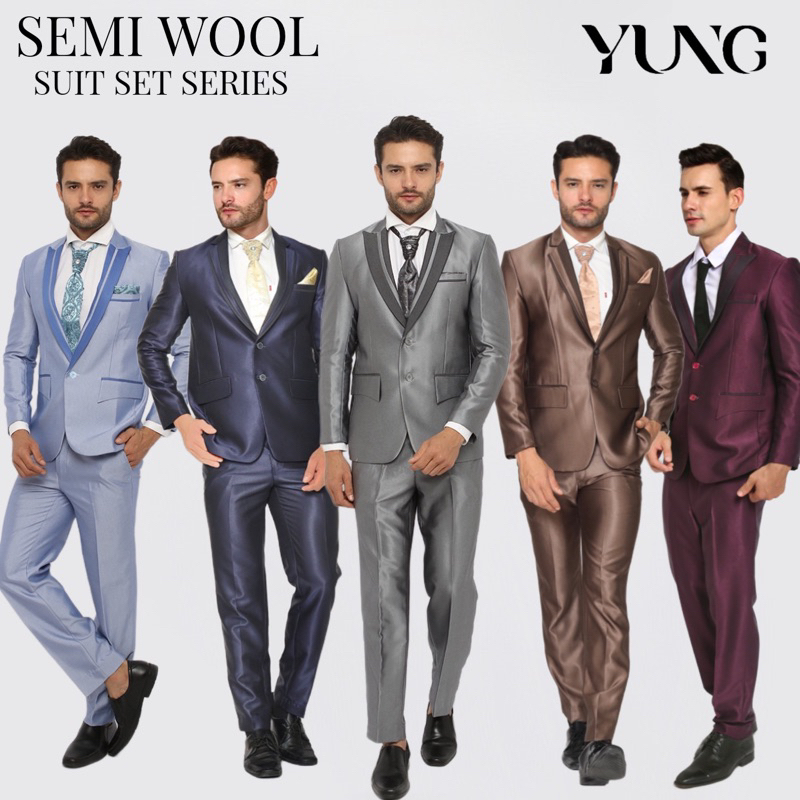 Jas Pria Pengantin Formal Setelan Semi Wool Glossy Blazer Wedding- YUNG
