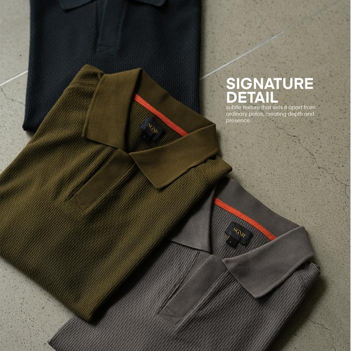 RIBS POLO TEXTURED SIGNORE - BLACK, S