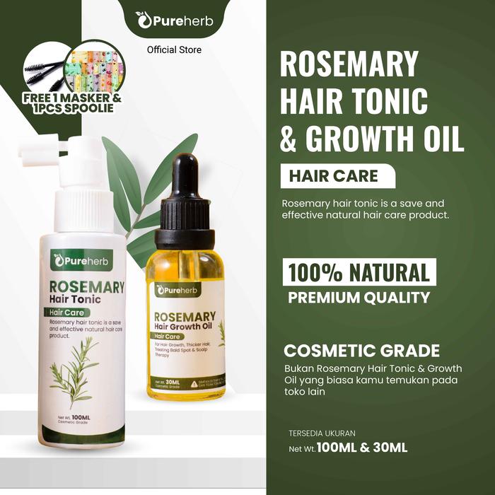BEST PRODUK ! PAKET HAIR TONIC & ROSEMARY HAIR GROWTH OIL BY PUREHERB ORI