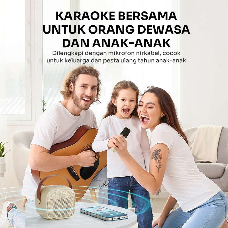 ROBOT RB50 Speaker Karaoke Bluetooth 5.3 Portabel Mini Full Bass dengan Mikrofon Nirkabel dan Lampu RGB Efek Musik 5W Su