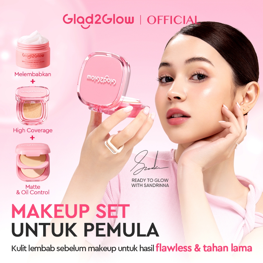 Glad2Glow 2In1 Makeup Combo Set Perfect Cover Cushion+Perfect Powder Foundation Dengan Kandungan Skincare Mencegah Kekus