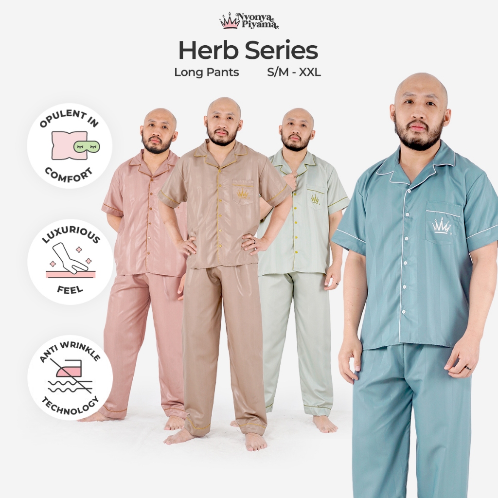 [BEST SELLER] Nyonya Piyama Poly Bamboo Set Celana Panjang Pria (Polos Herb Series) VOL 1
