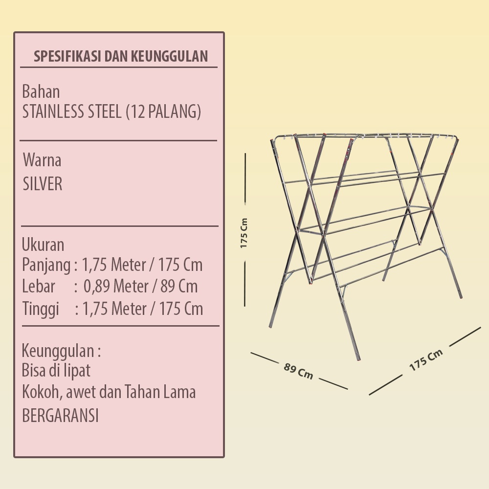 PROMO MENARIK Jemuran Baju Pakaian Stainless 12 Palang Anti Karat Super Murah - MUSTANG