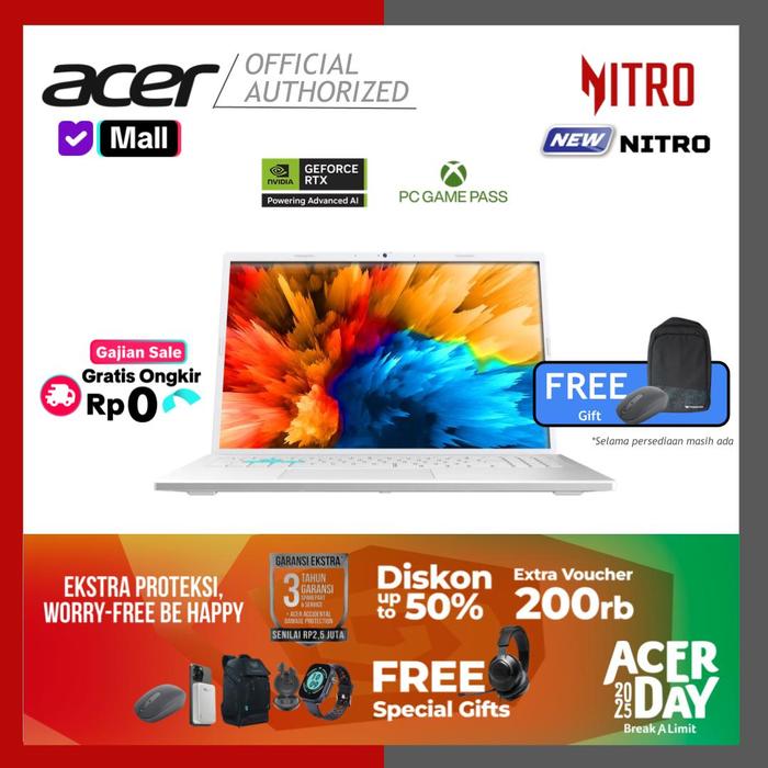 [Gajian Sale] Acer Nitro Lite 16 Core 5 210H 16Gb 512Gb Rtx3050 6Gb Gddr6 16" Wuxga Ips 180Hz 100 PERSEN Srgb W11H Oh24 White