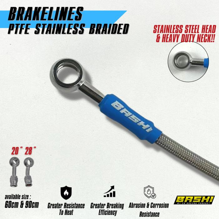 BASHI Selang Rem Balap Carbon Stainless Steel Bashi Brakelines PTFE Carbon 60 90 Cm - Silver Carbon 60 Cm