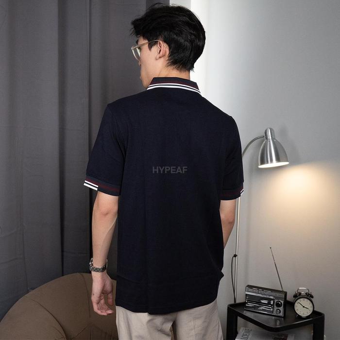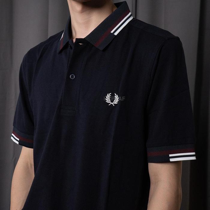 FRED PERRY ABSTRACT STRIPED BURNT RED WHITE NAVY POLO SHIRT AUTHENTIC / KAOS POLO FP ORIGINAL - S
