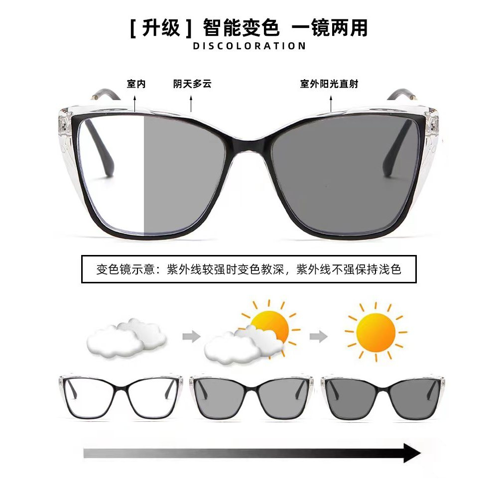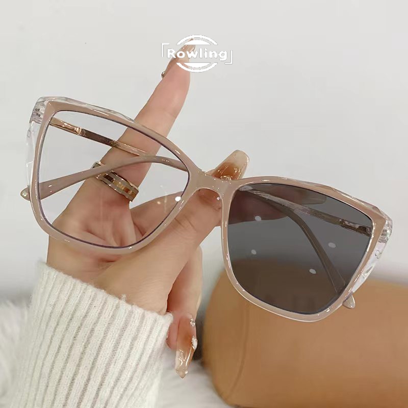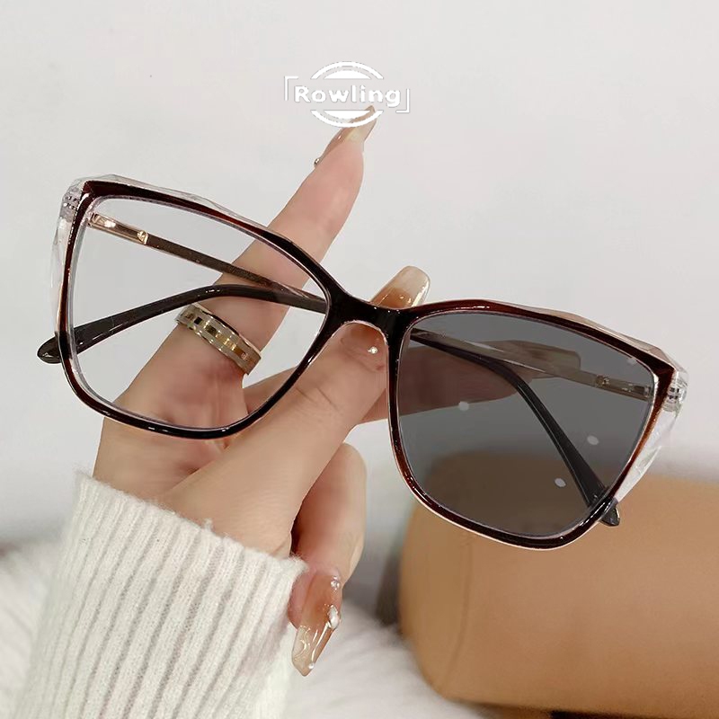 Rowling Pc-561 Kacamata lensa photocromic anti radiasi wanita pria kacamata bingkai Kotak Anti UV 2 In 1 fotocromic