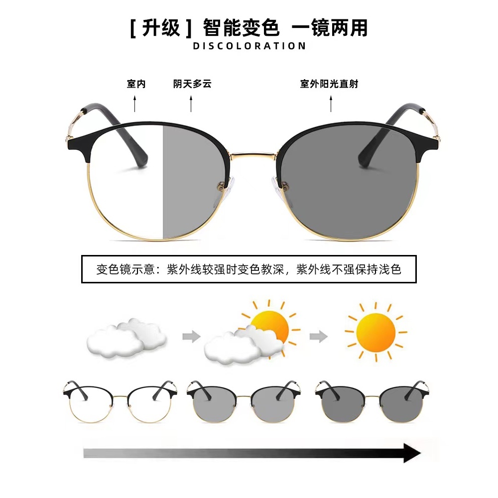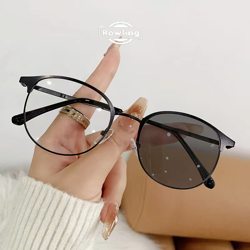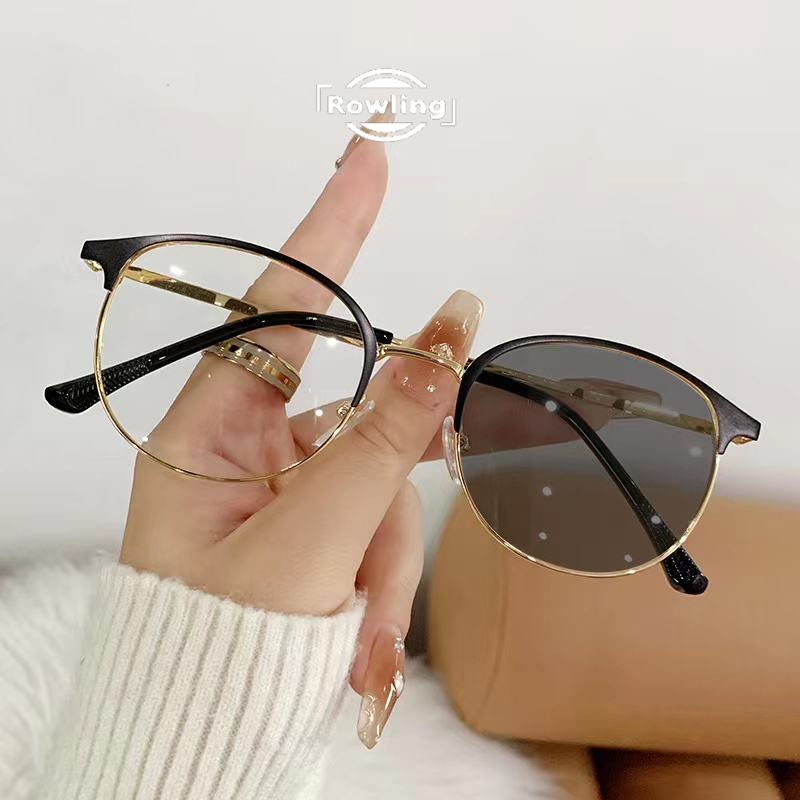 Rowling Pc-552 2 In 1 Kacamata lensa photocromic anti radiasi & non photocromic wanita Pria kacamata bingkai Titanium Bulat Anti UV fotocromic