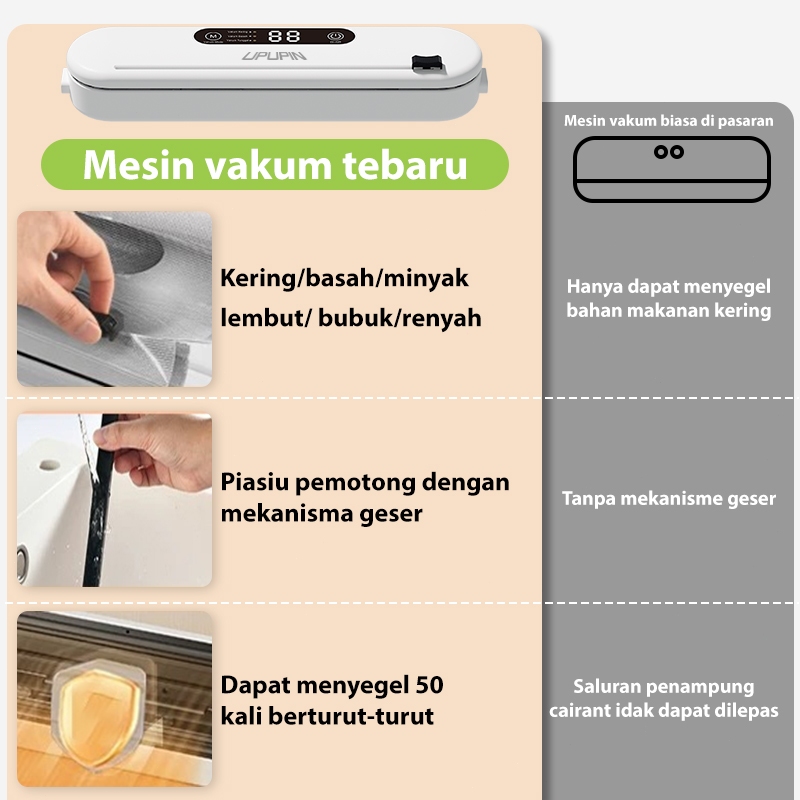 UPUPIN Mesin Vacum Sealer Makanan Alat Vakum Makanan / Penyegel Otomatis/ Basah Dan Kering Fresh