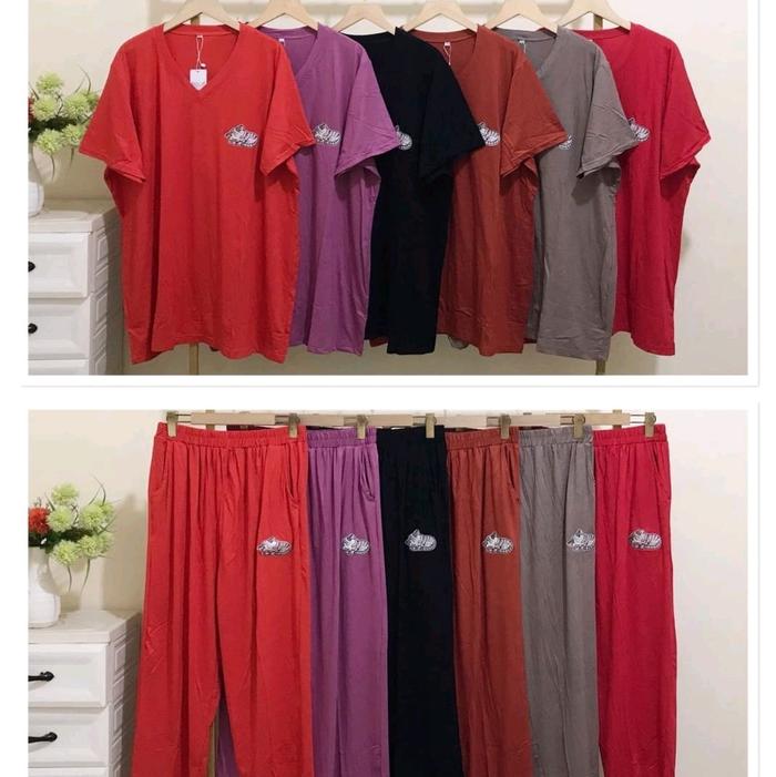 SETELAN CELANA PANJANG WANITA BAJU TIDUR SIZE JUMBO - CP SEMANGKA LD130 MERAH