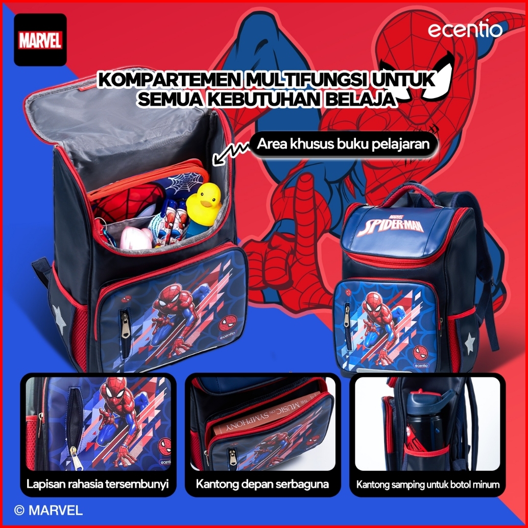 Ecentio Tas Anak Sekolah Laki Laki Sd Import Bahan Nilon Premium Karakter Disney Spider Man Back To School