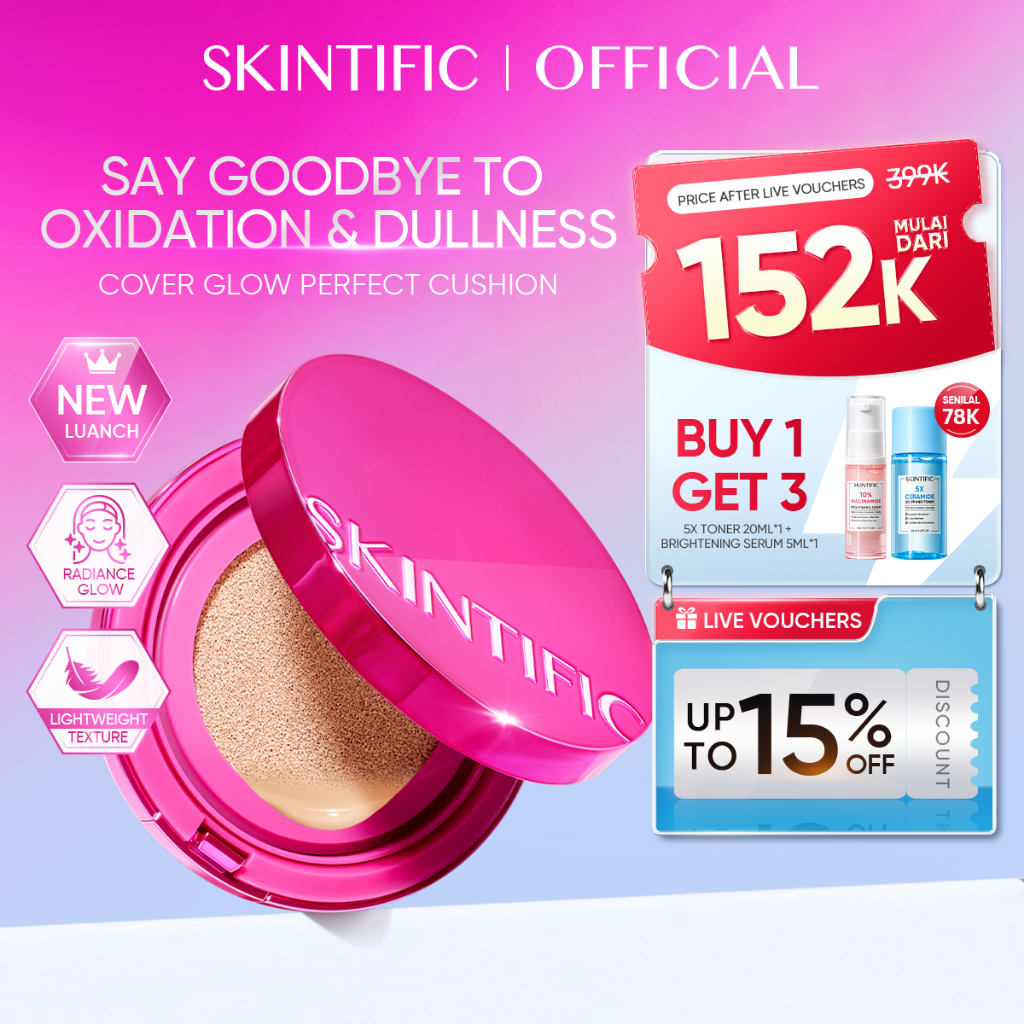 Skintific - Cover Glow Perfect Pink Cushion | Full Coverage Radiance Glow Antioxidation Dewy Flawless Long-Lasting Bedak