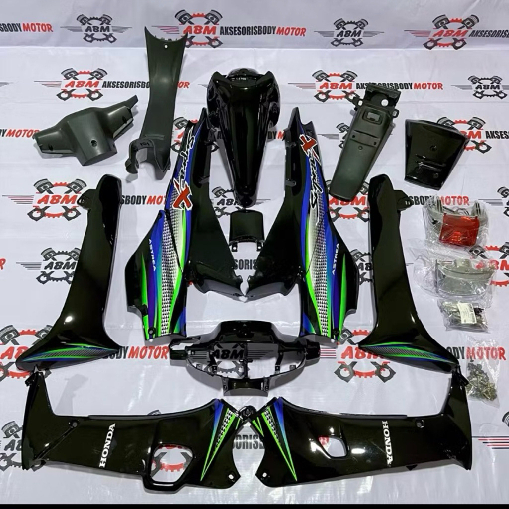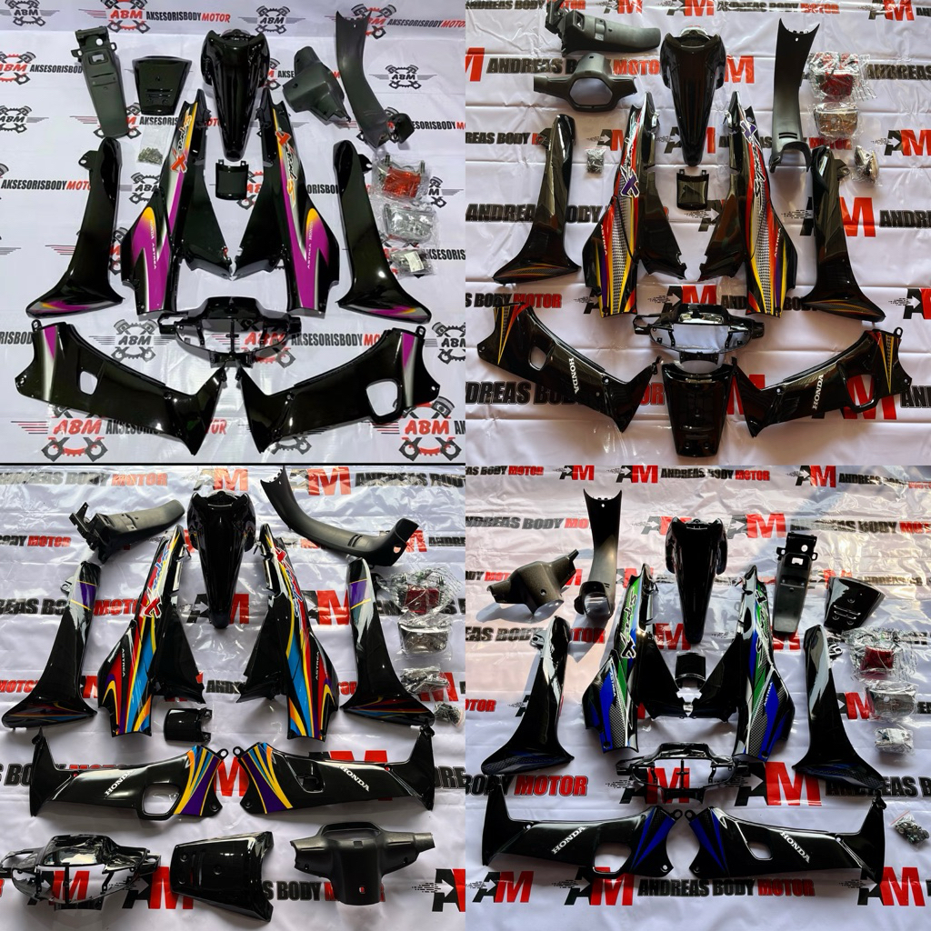 HONDA SUPRA X LAMA FULL SET BODY KASAR DAN HALUS SUPRA X LAMA 2001 2005 HITAM PLUS STRIPING