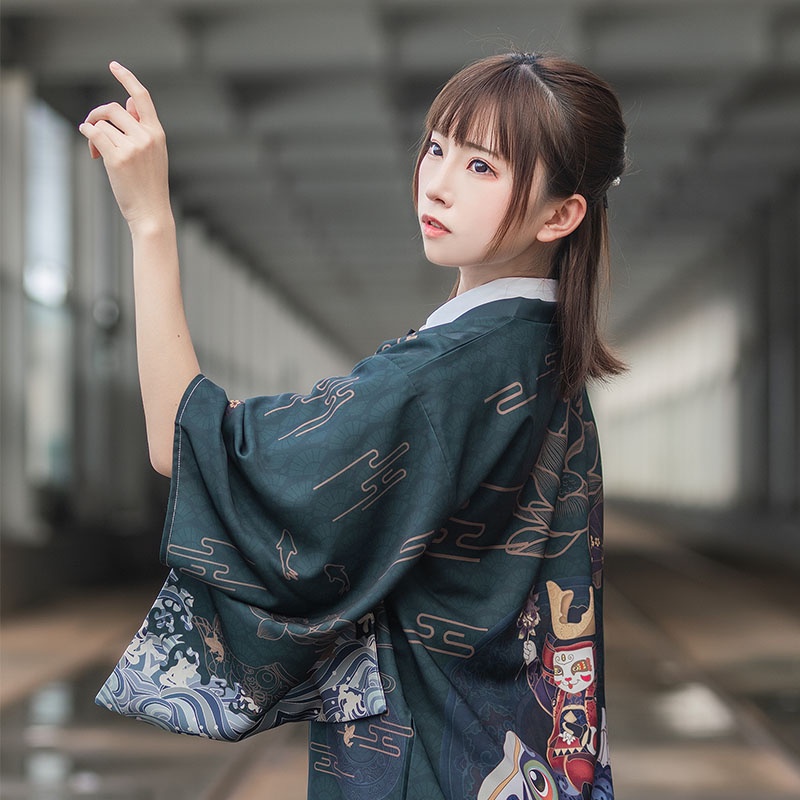 New Fashion Red Blue Green Black Carp Print Street Cardigan Kimono Wanita Jepang Harajuku Kimono Longgar Pria Pakaian 20