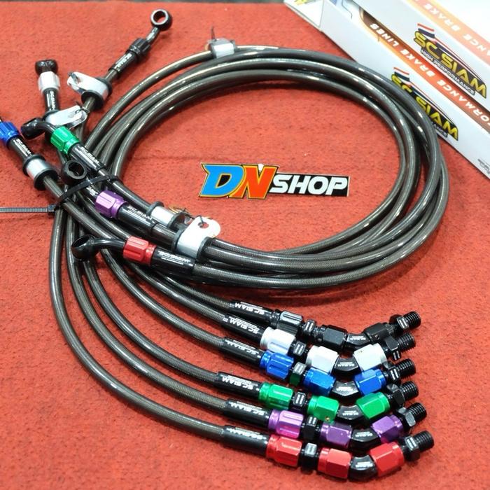 Selang rem depan sc siam 36 inch 90 cm fitting 45 derajat original thailand - Hitam