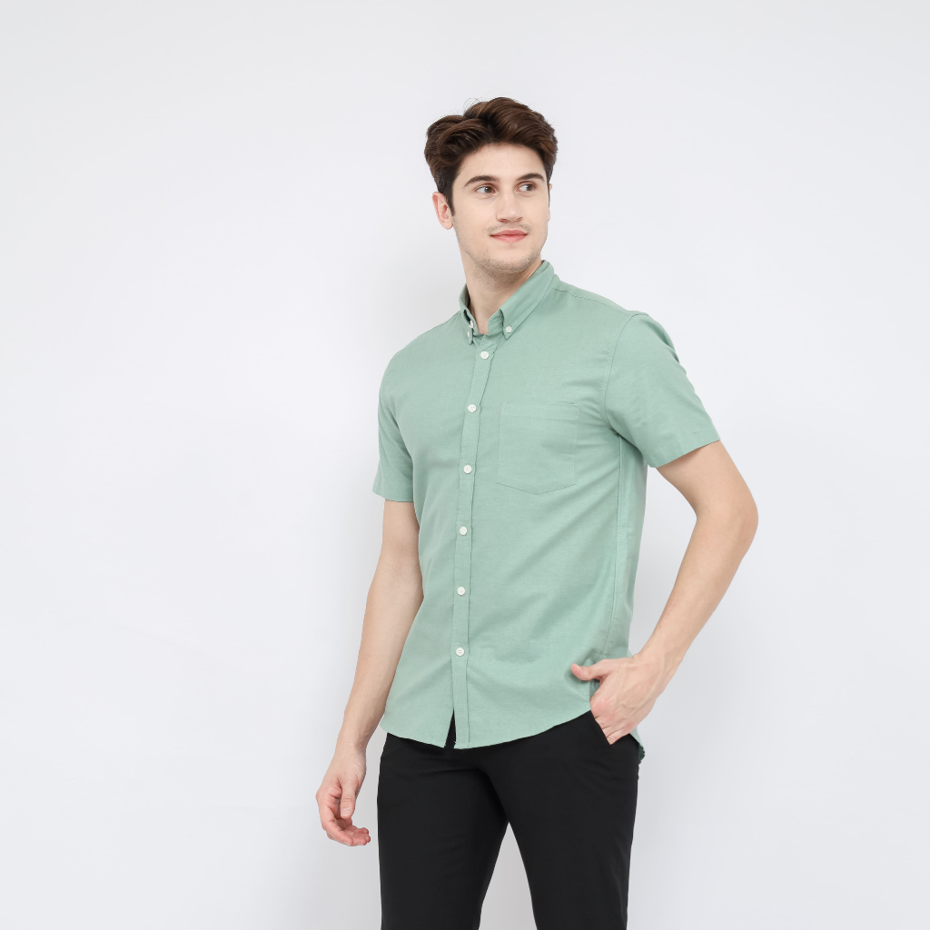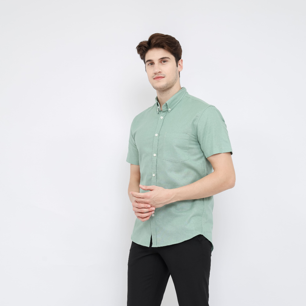 Eniqno - Kemeja Pria Lengan Pendek Katun Linen - Sage