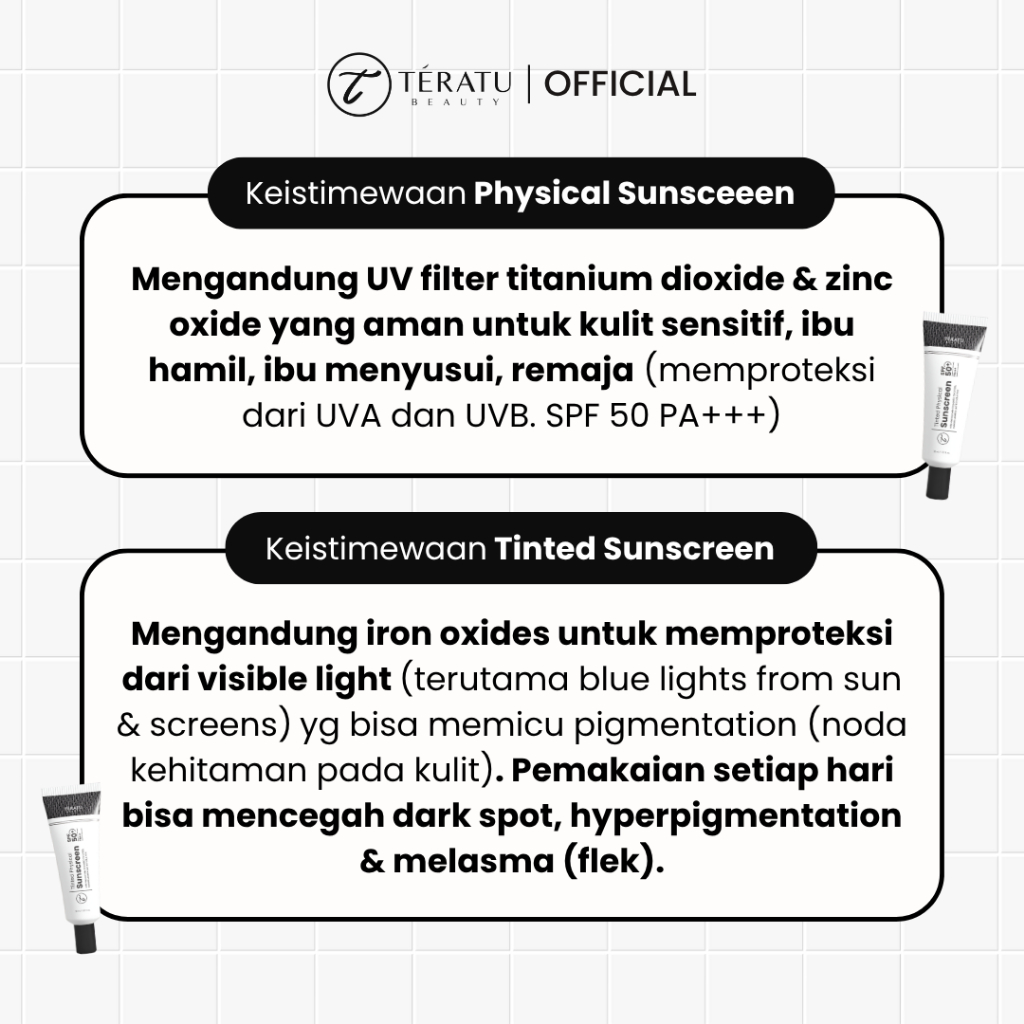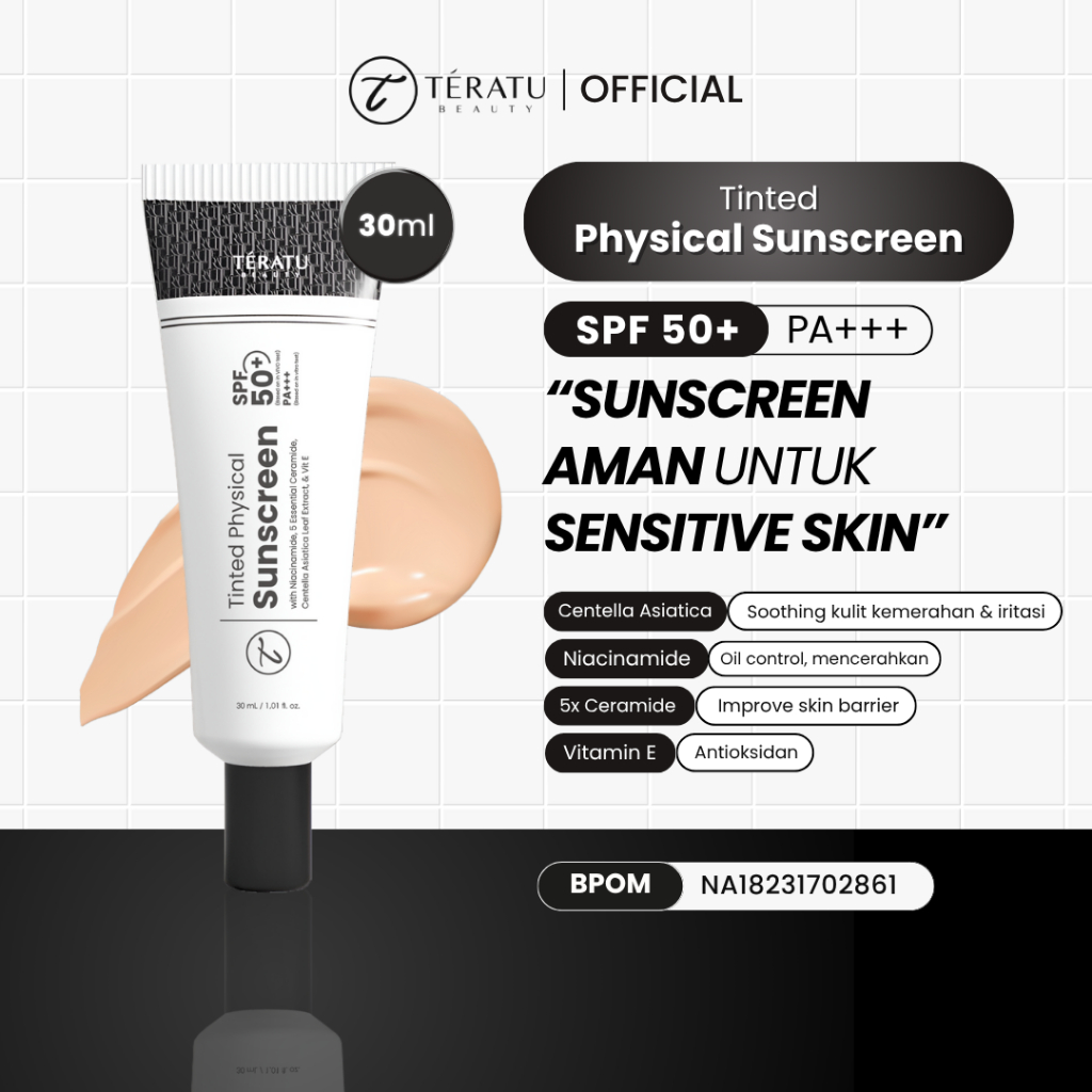 Teratu Beauty Tinted Physical Sunscreen - 30 Ml (Mineral Sunscreen Untuk Kulit Sensitif Dengan Uva Dan Uvb Spf 50 Pa+++)