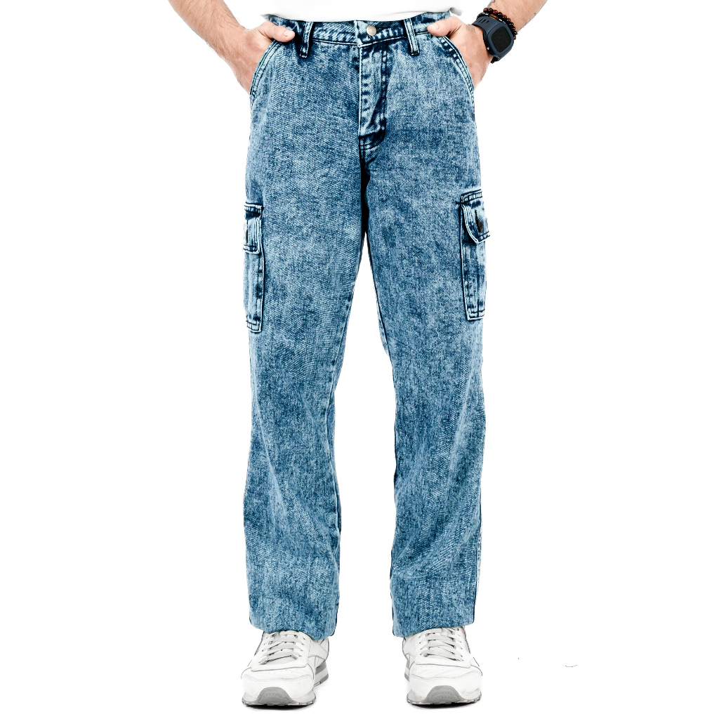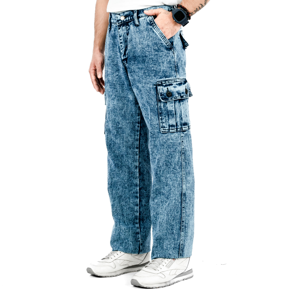 Gizmo Celana Cargo Jeans Pria Loose fit reguler gombrong Skena / Cargo pants Jeans Reguler Standard Denim washed Blue sandwash