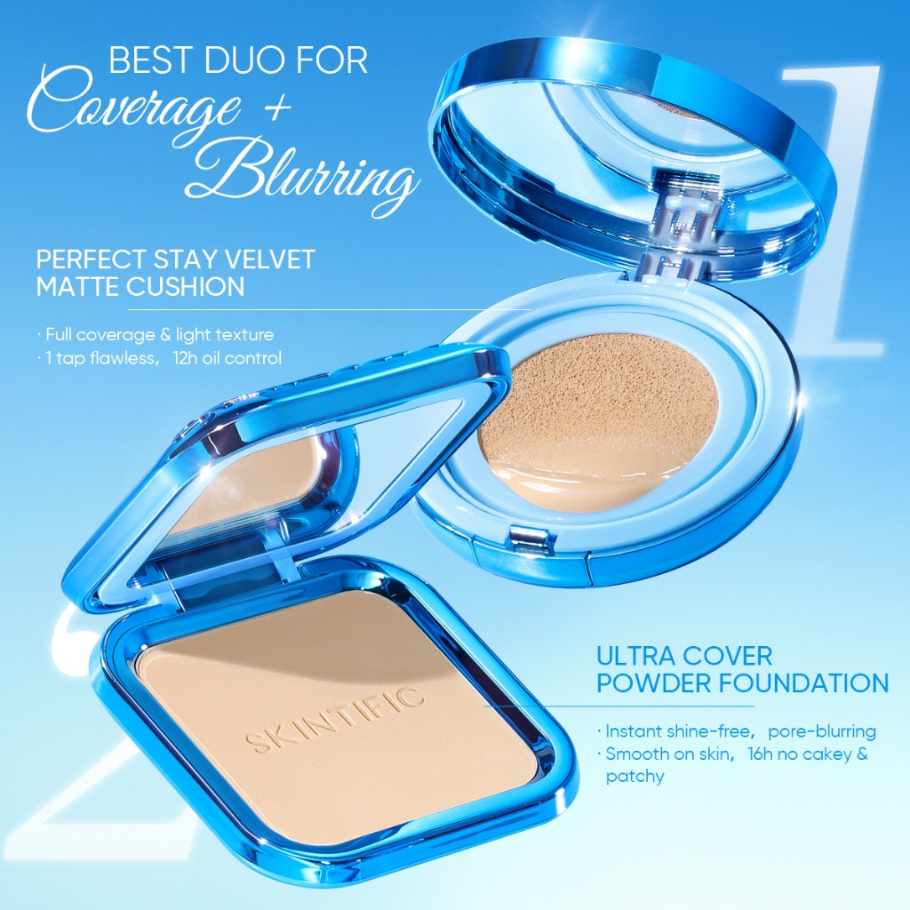 Skintific 2Pcs Paket Makeup Set | Perfect Stay Velvet Matte Cushion 11Ml + Ultra Cover Powder Foundation 9G
