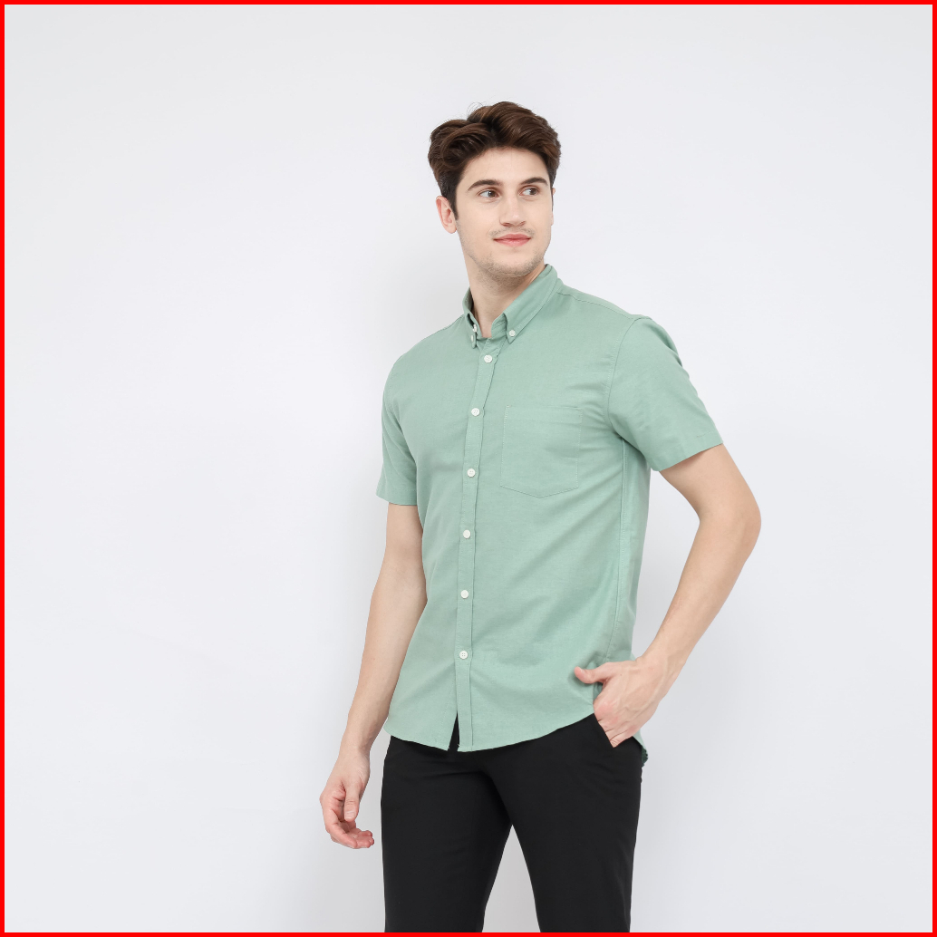 Eniqno - Kemeja Pria Lengan Pendek Katun Linen - Sage