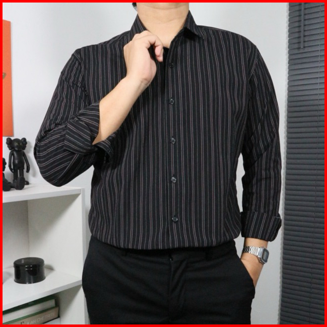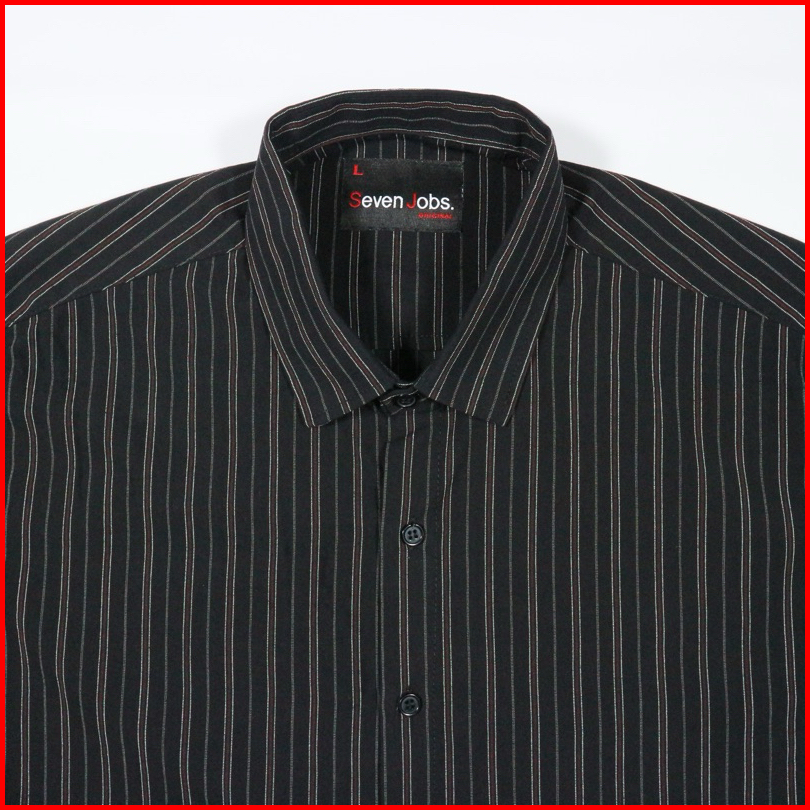 Seven Jobs - Kemeja Stripe Pria Lengan Panjang Stripes Shirt Kemeja Salur Lengan Panjang Hitam