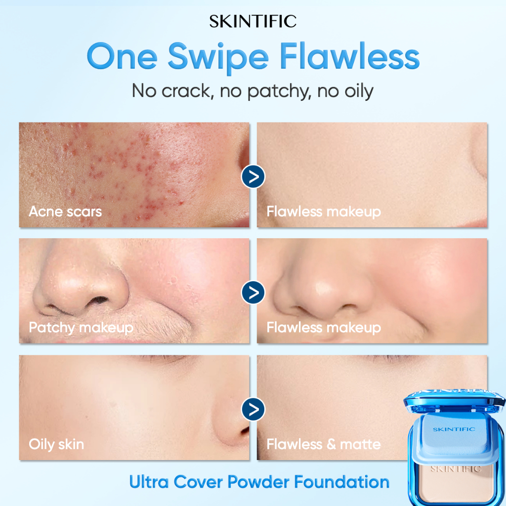 [Skintific] 2In1 Cushion+Powder | 2Pcs Paket Makeup Set Perfect Stay Velvet Matte Cushion 11Ml + Ultra Cover Powder Foun