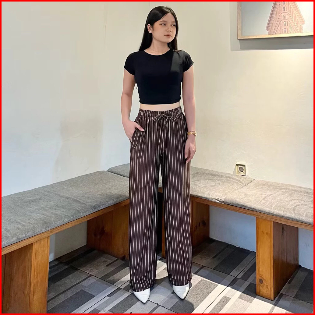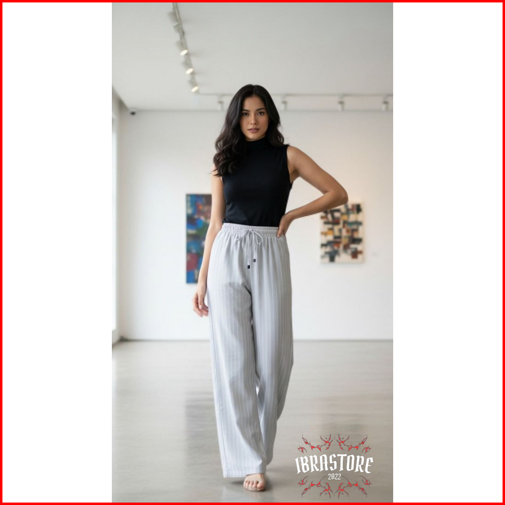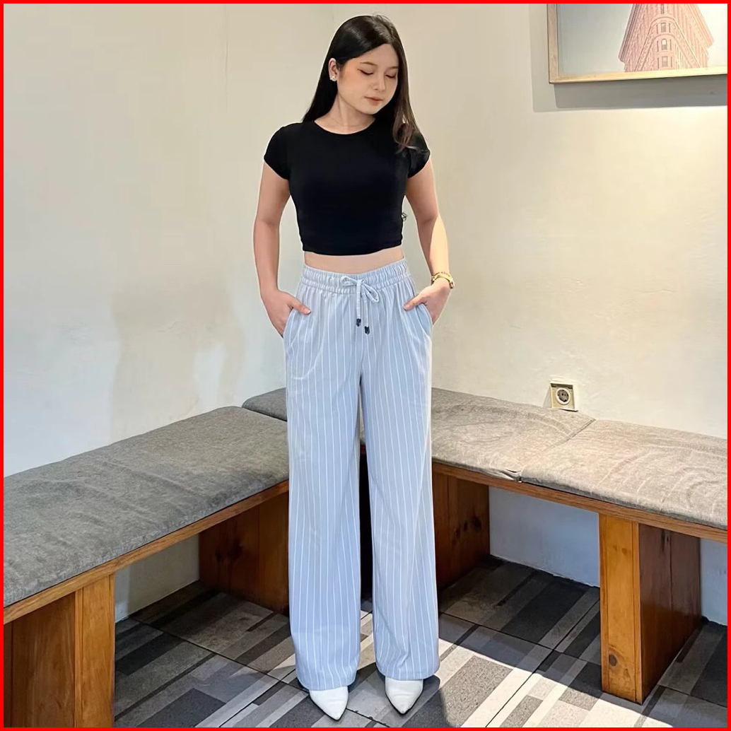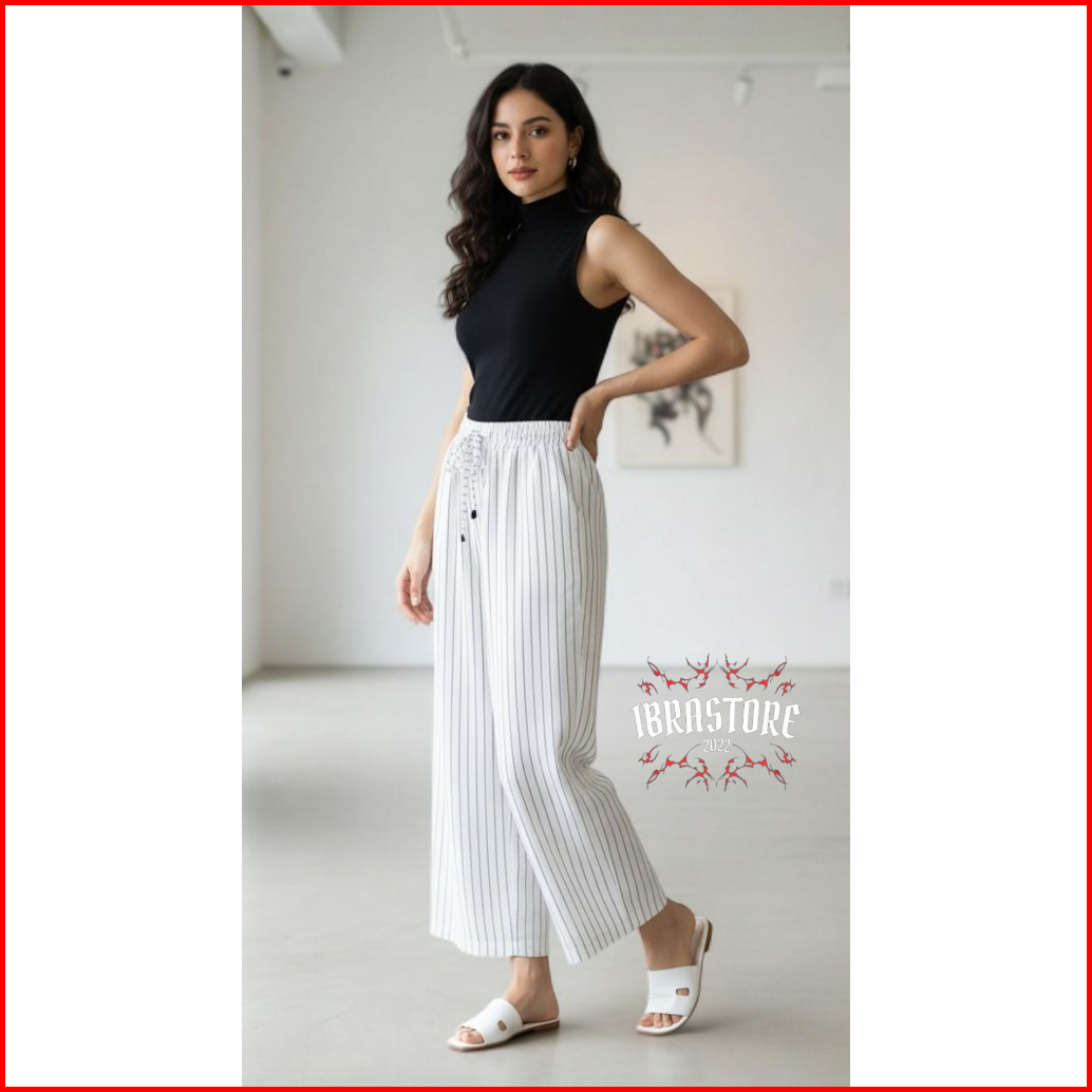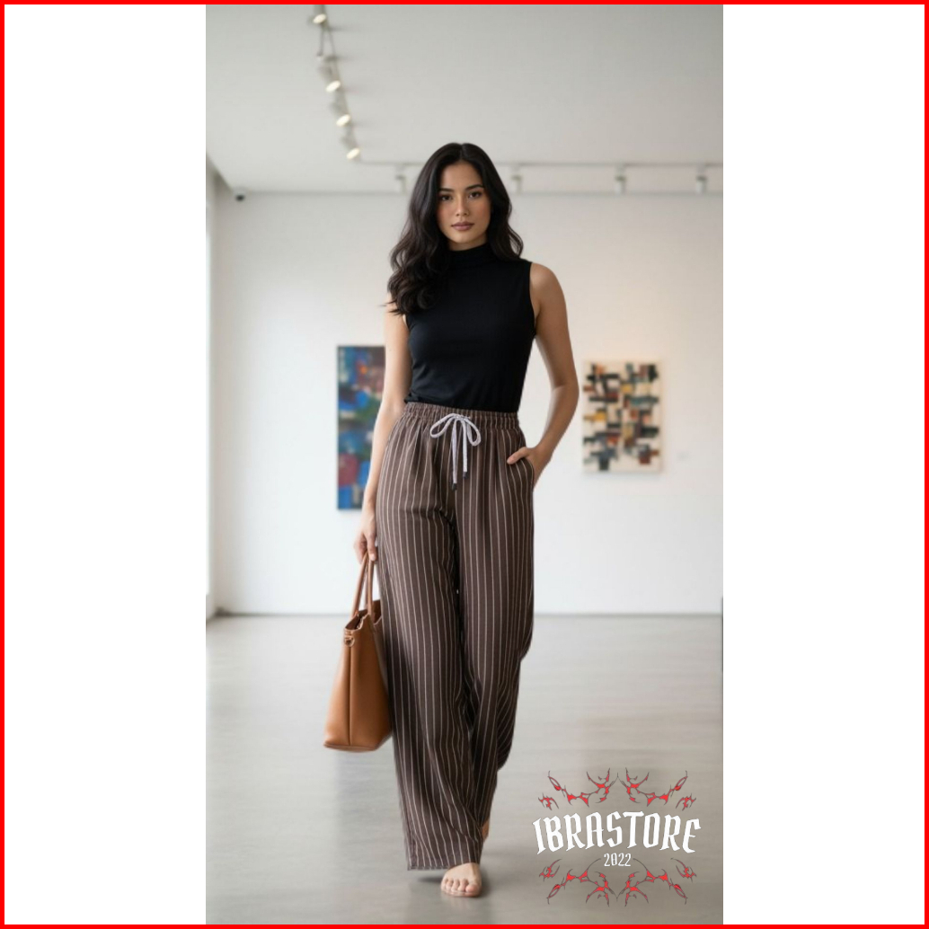 Ibrastore-everydays Pants Stripe Bangkok - Celana Panjang Wanita Baggy Kuliah Motif Garis Pintstripe