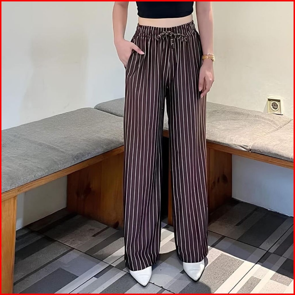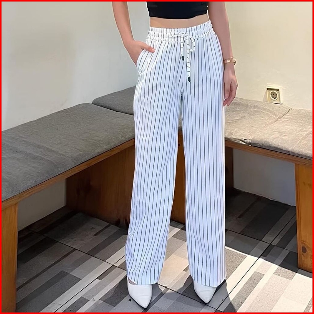 Everyday Pants - Kulot Stripe Bangkok - Celana Kulot Panjang Formal Kekinian Motif Garis