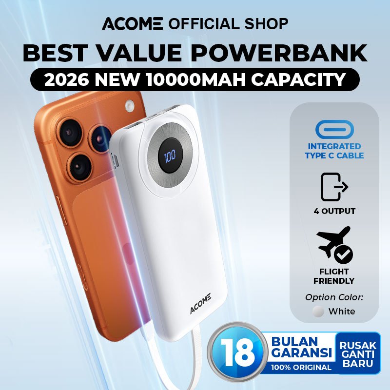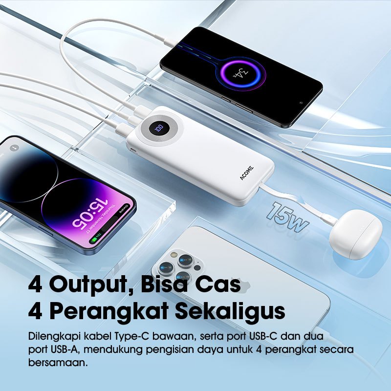 ACOME Powerbank 10000mAh Fast Charging 15W with Type-C Cable 4 Output LED Display Compatible For iPhone Samsung Huawei