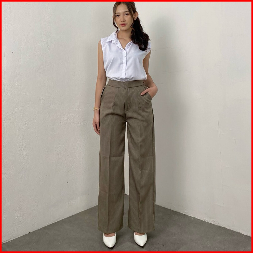 Kuma Pants - Loose Pants Stripe Trouser Wanita - Celana Anti Kusut - Celana Kulot Wanita