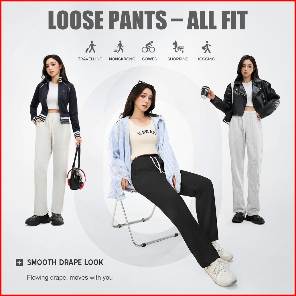 Kktop Celana Training Wanita Oversize Casual Fashion Pants Lembut Nyaman Bernapas 280g Cocok Untuk Hangout Belanja