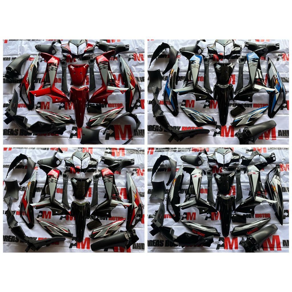 Full set cover body halus dan kasar Motor Supra x 125 Batman 2008-2014 karburator Merah & Hitam