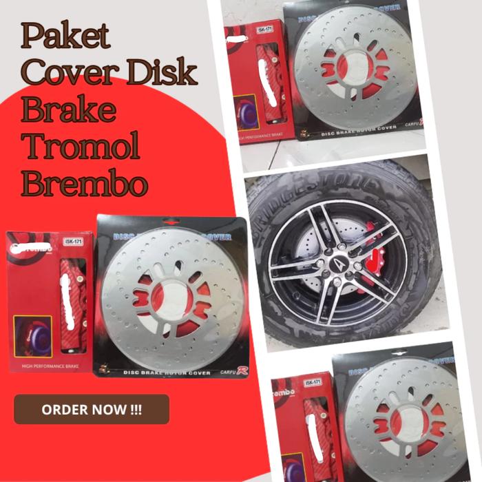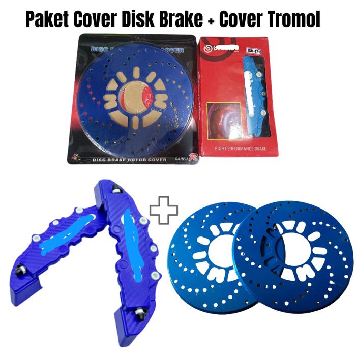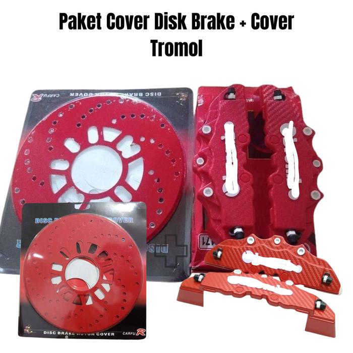 PAKET COVER DISK BRAKE DAN TROMOL MERAH/SILVER/KUNING/BIRU CARBON - MERAH+MERAH