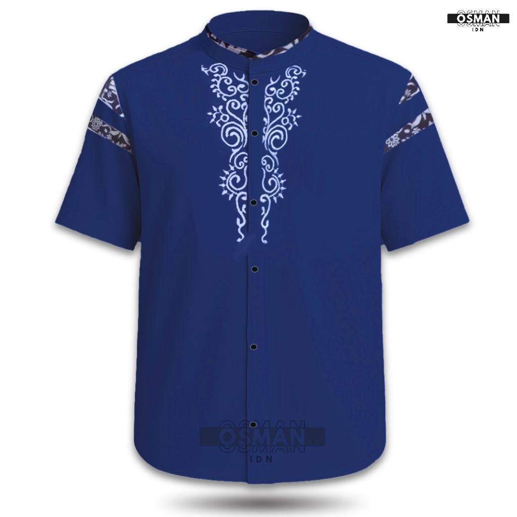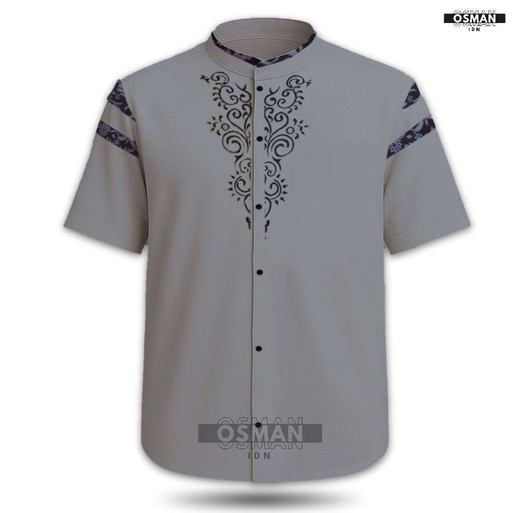 Baju Koko Pria Dewasa – Model Slim Fit Elegan Lengan Pendek Kombinasi Bordir