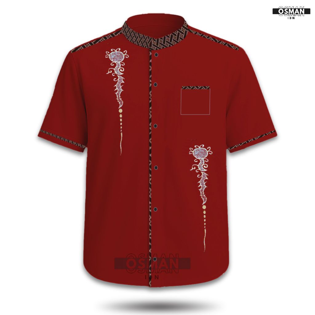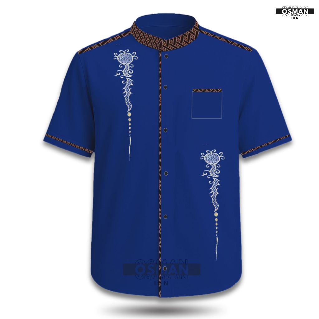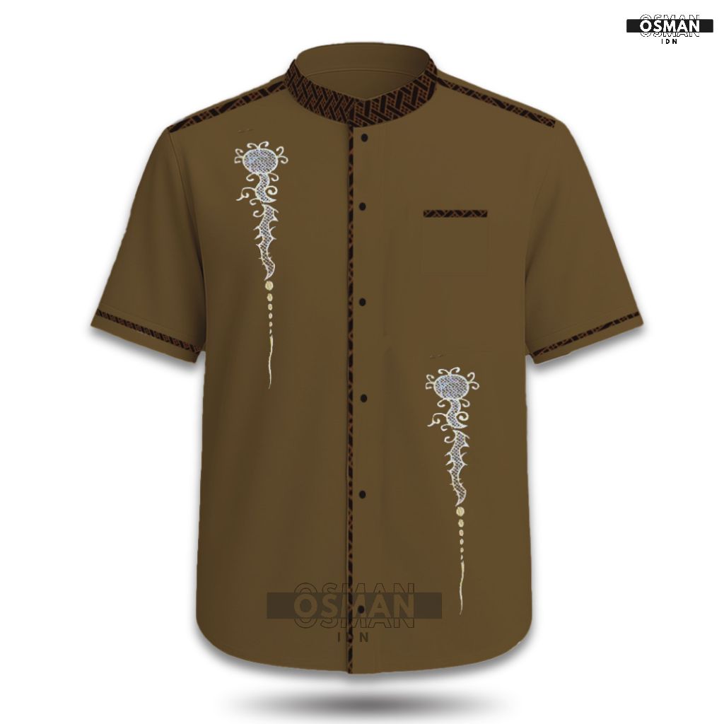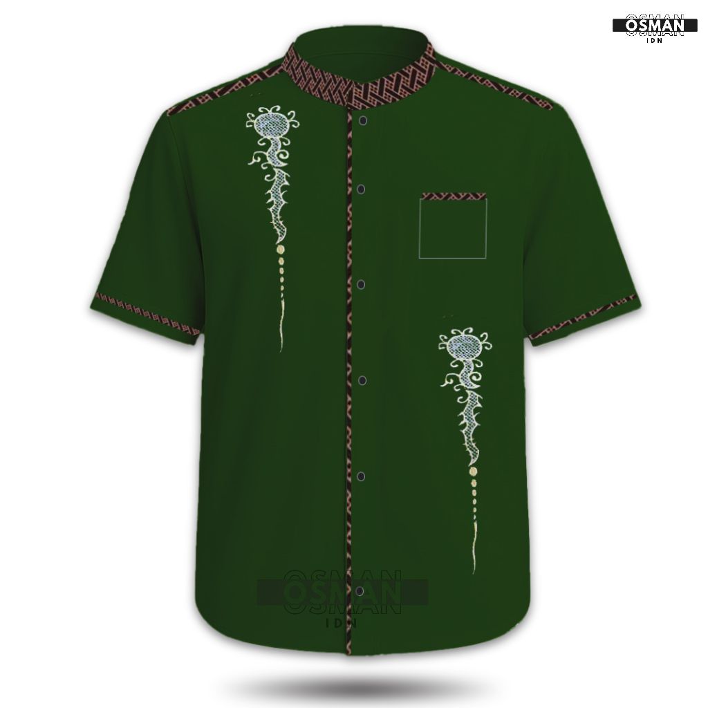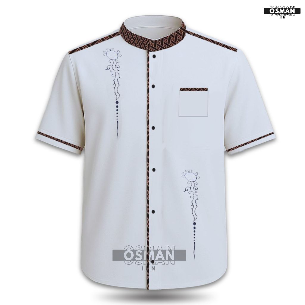 Baju Koko Pria Dewasa – Model Slim Fit Elegan Lengan Pendek Kombinasi Bordir