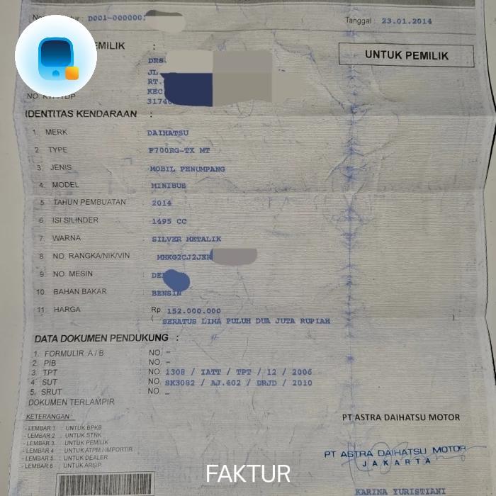 FAKTUR KENDARAAN MOBIL DAN MOTOR SEGALA TYPE KENDARAAN - FAKTURSAJA