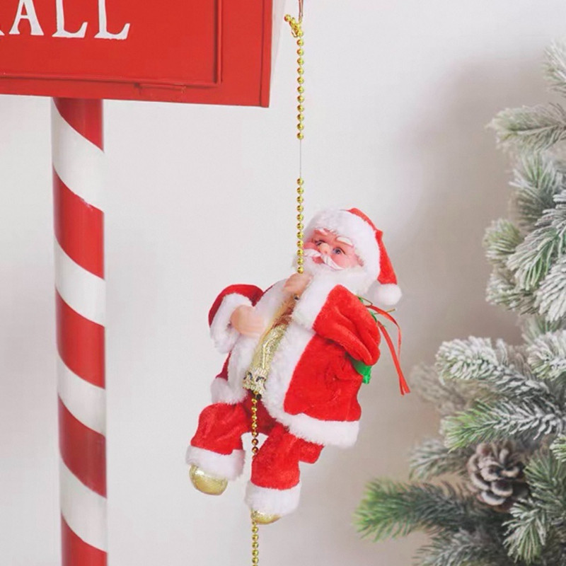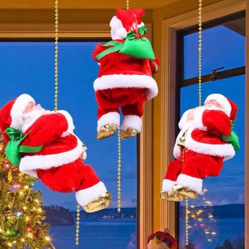 [Star] Hadiah Natal Boneka Santa Claus Elektrik Mainan Musik Dekorasi Pajangan Anak-anak Natal Hiasan Natal Ransel Tali Panjat