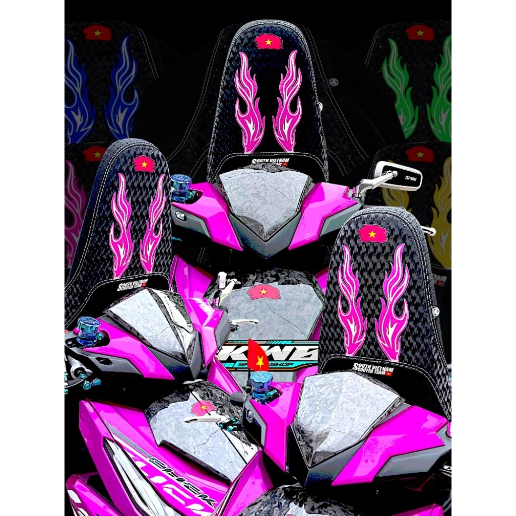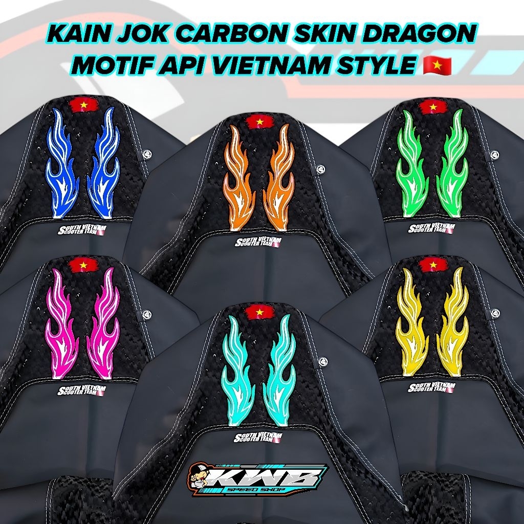Sarung Jok Kain Kulit Jok Motor Kain Hitam Mix Sisik Naga Motif Api V1 Skin Dragon Logo Vietnam Style Universal Semua Motor Free Sticker