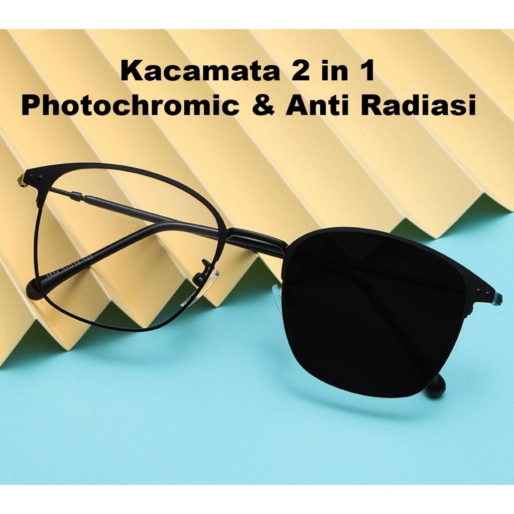 Kacamata Photocromic Korea Anti Radiasi 2 In 1 Photochromic Pria Wanita