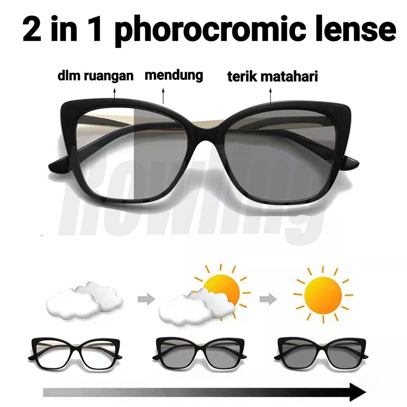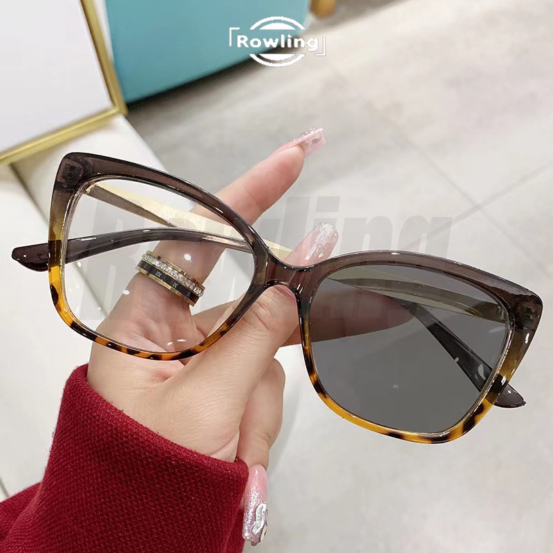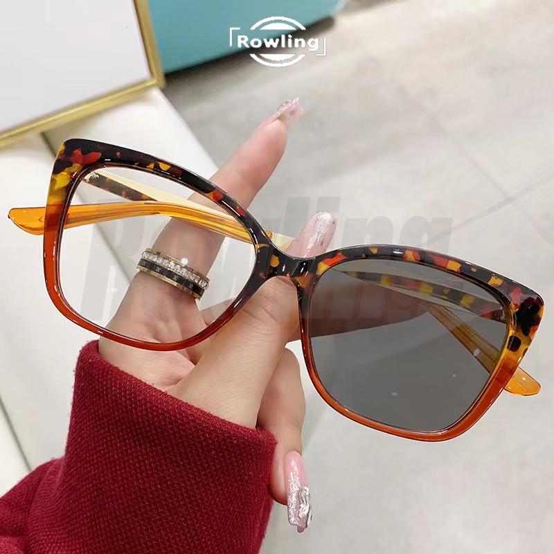 Rowling Pc-313 2 In 1 Kacamata lensa photocromic anti radiasi wanita kacamata bingkai Cat Eye Anti UV fotocromic