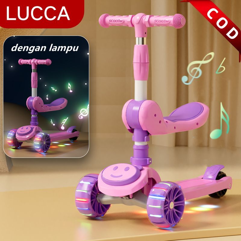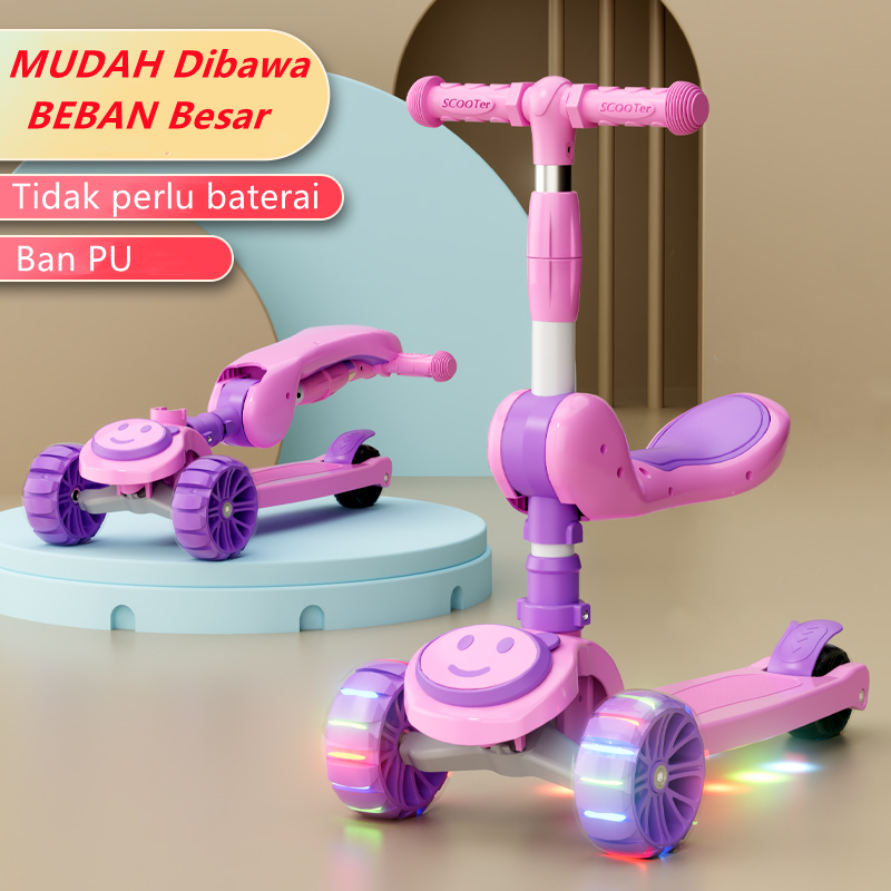 Skuter Anak Roda 3 dengan Lampu Musik Scooter 2 in 1 Bisa Lipat