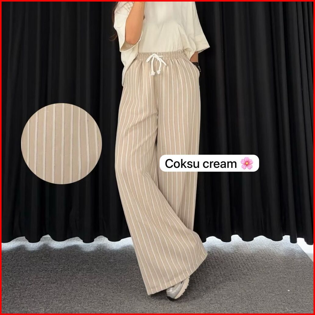 Nf - Celana Panjang Wanita Kekinian - Celana Wanita Garis Garis Highwaist - Stripe Pants Terbaru