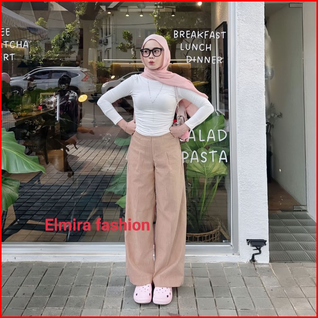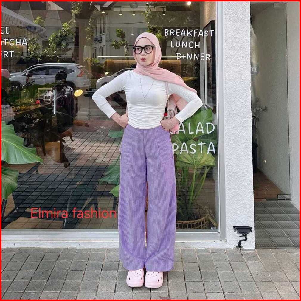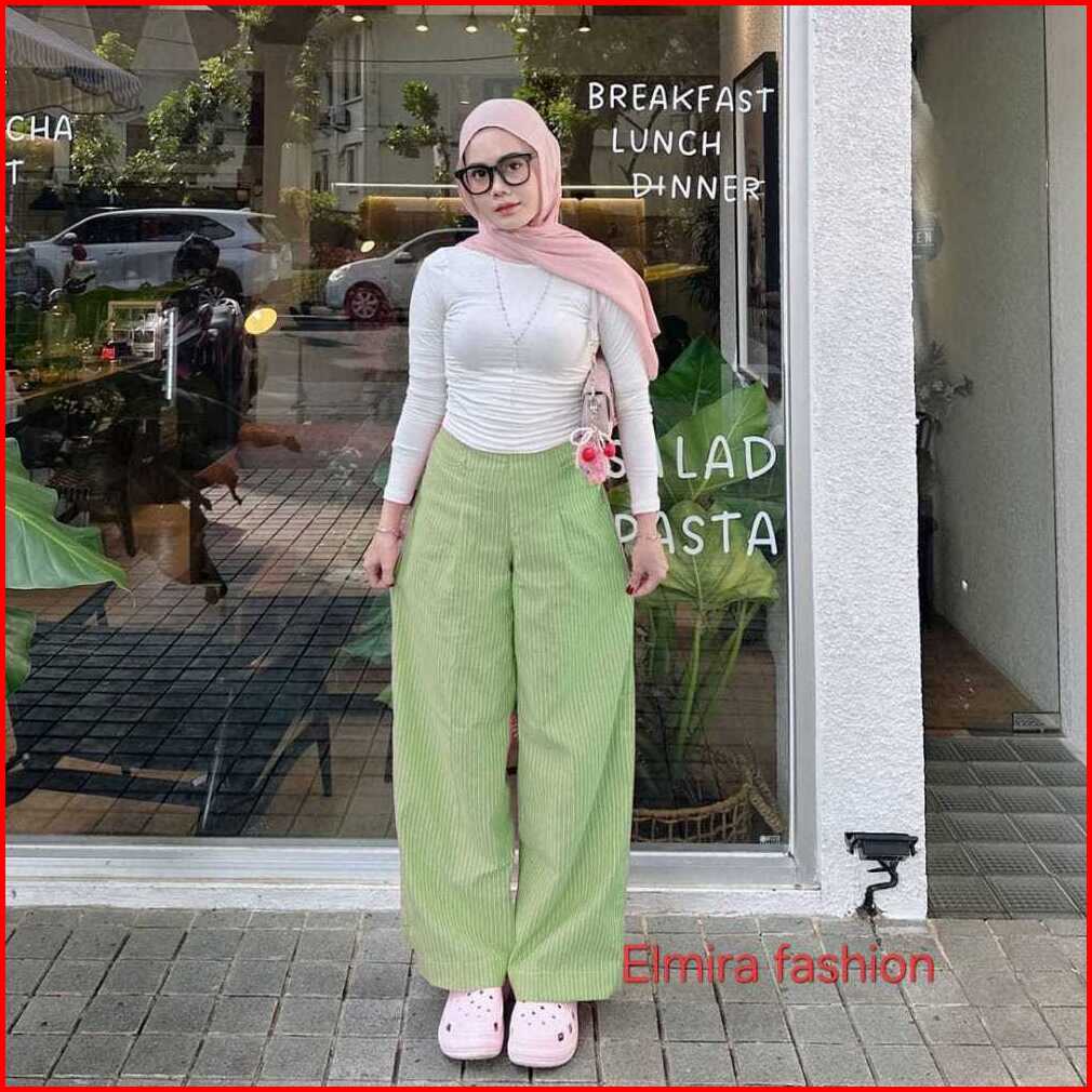 City Pants Celana Panjang Wanita Korean Style Kantor Kerja Kuliah Tidur Santai Motif Garis Kulot Pinstripe Everyday Stri