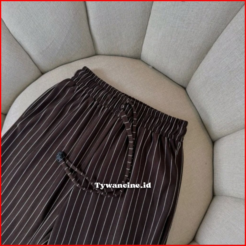 Everyday Stripe Pants - Celana Kulot Panjang Wanita Highwaist Motif Garis-garis Stripe Bangkok Celana Formal Casual Sant