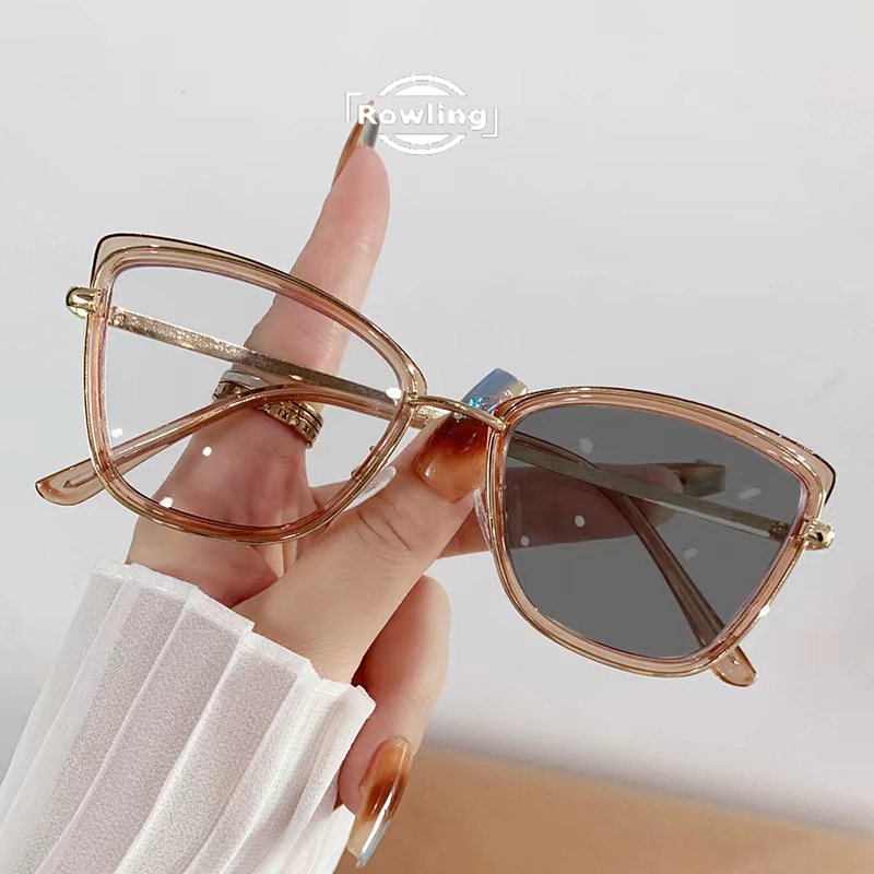 Rowling Pc-565 Kacamata lensa photocromic anti radiasi Wanita Pria kacamata bingkai Kotak Anti UV 2 In 1 fotocromic