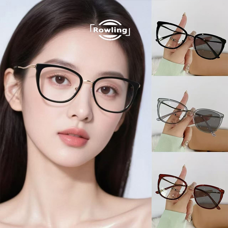 Rowling Pc-686 2 In 1 Kacamata lensa photocromic anti radiasi & non photocromic wanita kacamata bingkai Titanium Cat Eye Anti UV fotocromic