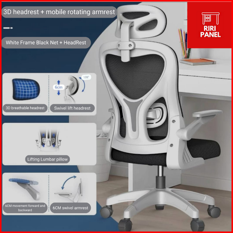Riri Kursi Headrest Kursi Roda Kursi Kantor Kursi Belajar Kursi Hidrolik Tilt Roda Multifungsi