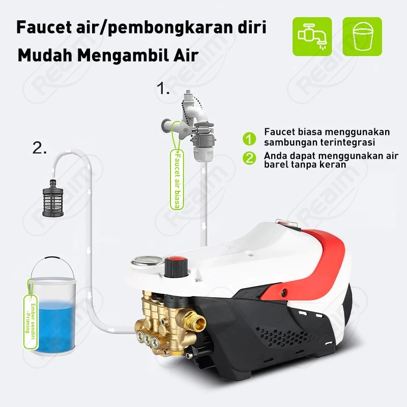 Reaim Jet Cleaner - 800W Alat Steam Cuci Motor & Mobil, 500Bar High Pressure Washer dengan Tekanan Disesuaikan