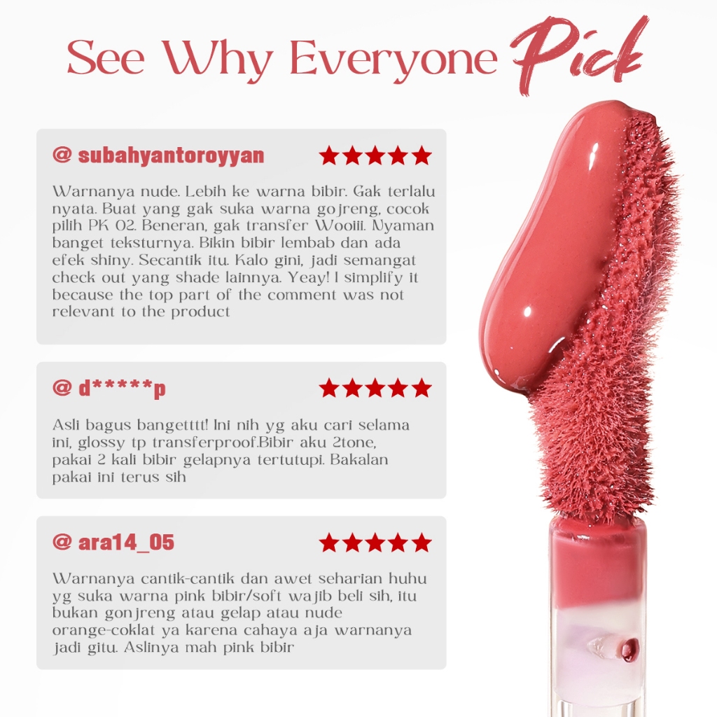 Bpom Focallure Lip Tint Super Glazed Shine Lip Glossy Lightweight