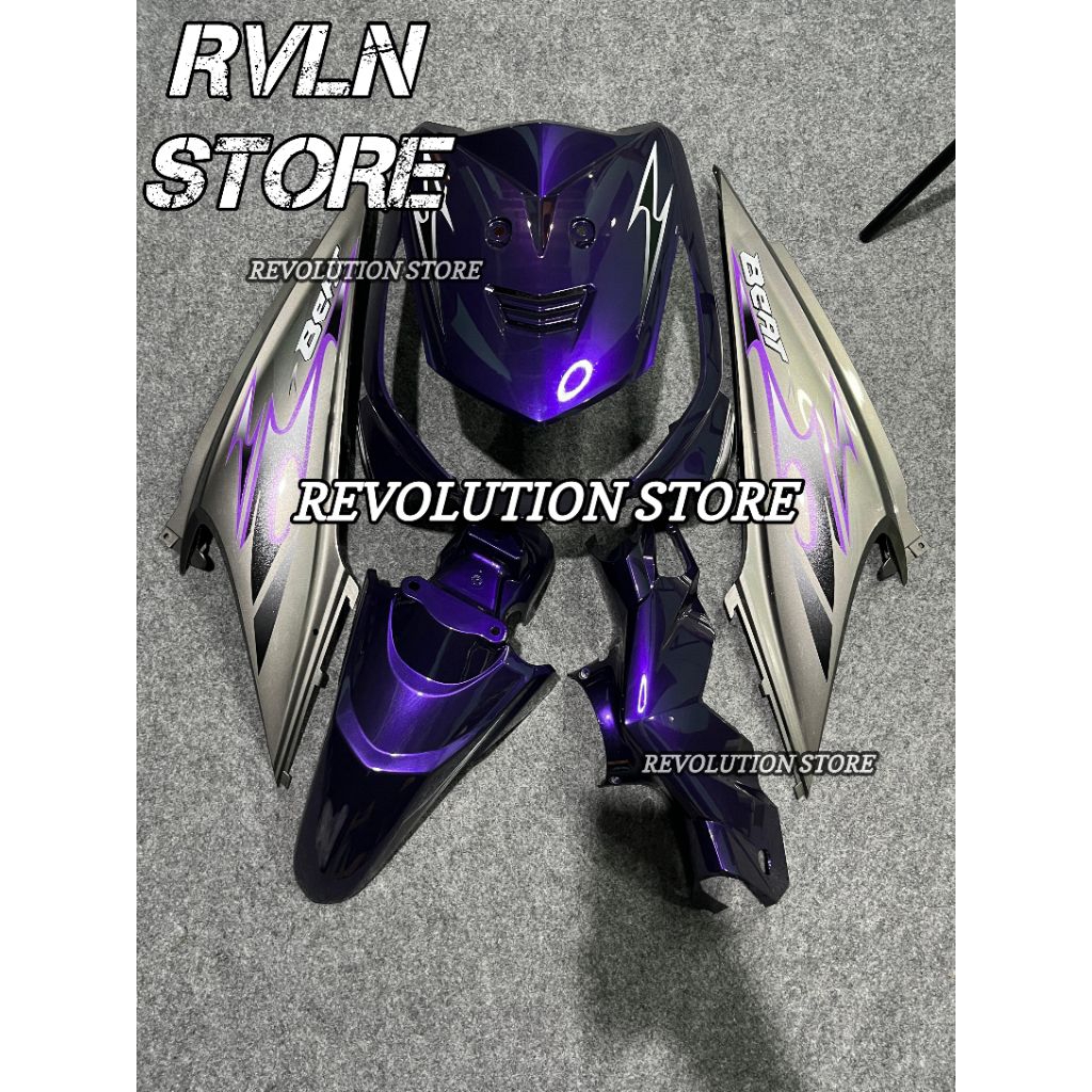 Cover body full set bodi halus Honda beat karbu ungu candy mix grey striping beat transparan vietnam style tahun 2008 sampai 2012